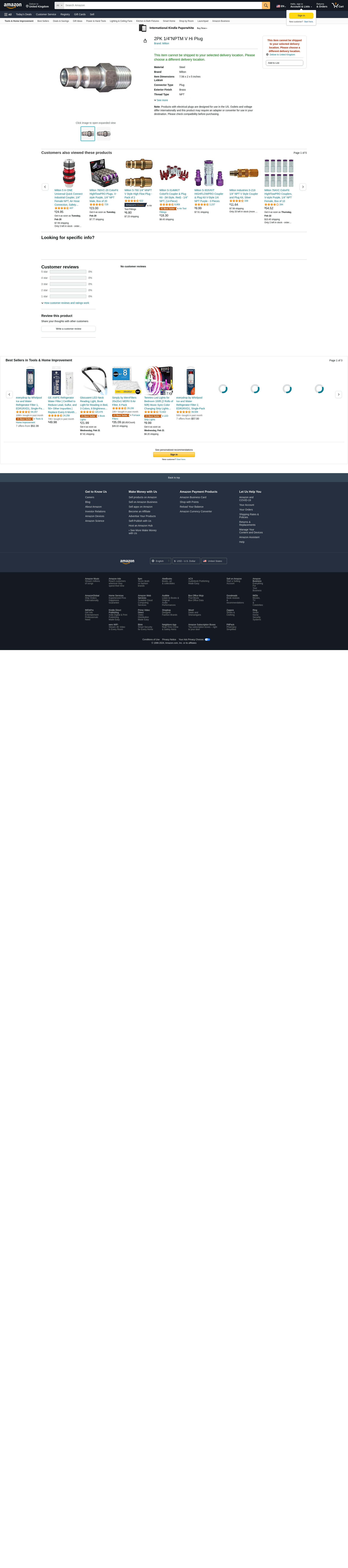 Milton s-760-1 V Style High Flow Steel Plug 1/4" MNPT 2 Pack