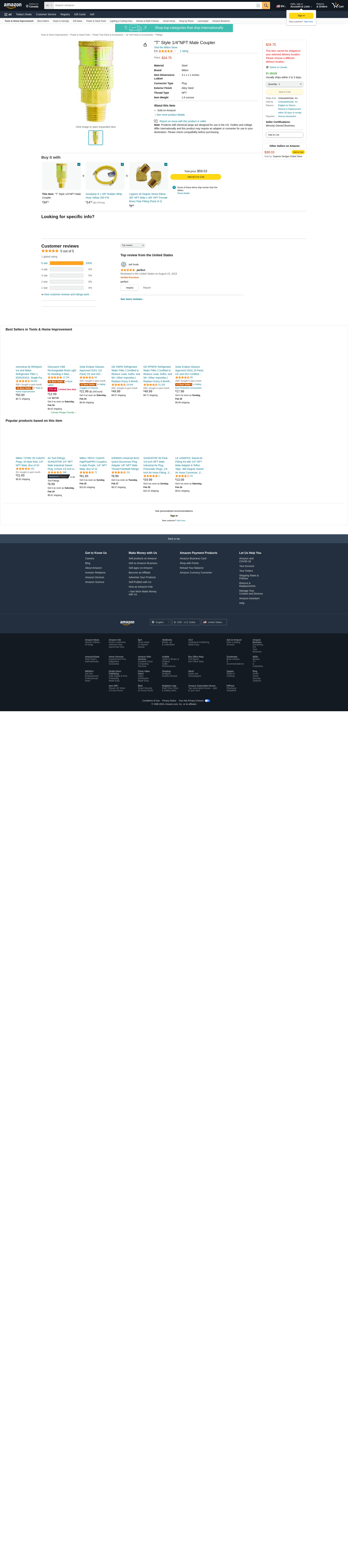 Milton S-786 1/4" MNPT T Style Coupler