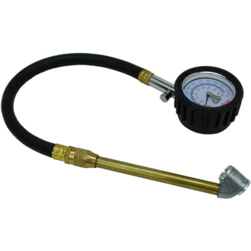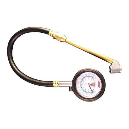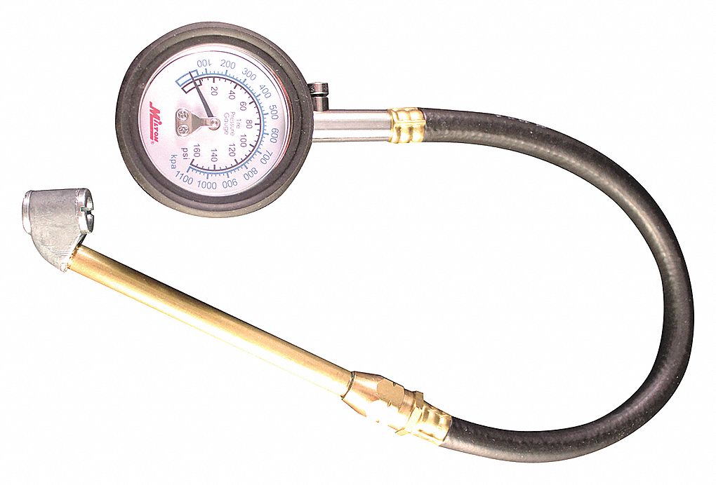 Features and Benefits: Dial reads in PSI and kPa Durable rubber boot Internal diaphragm construction for greater durability Deflator valve Dual head chuck Dial Tire Gauge with 12" Hose. Gauge is 3-2-3 Accuracy, 3% in the first quarter of the gauge, 2% in the middle half of the gauge and 3% in the upper quarter of the gauge. 0-160 PSI - 5 lb increments, 0-1100 kPa - 20 kPa increments.