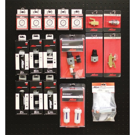 <ul> <li>18 SKUs of Top Selling FRLs</li> <li>Kit includes a branded Milton Pegboard Overlay</li> <li>We also include Re-Order Cards for each SKU</li> <li>2' X 2' Display</li> <li>30 pieces of product included in kit</li> </ul> <p>Milton 2' X 2' Filters-Regulators-Lubricators Planogram contains 18 SKUs of our Top Selling Filters, Regulators and Lubricators. This compact display maximizes the number of SKUs for a 2' X 2' display. The kit includes a branded Milton Pegboard overlay along with a six pack of plugs for easy installation. We also include blank Re-Order Cards for each SKU in the assortment.</p><p><b><ul>WARNING: Cancer and Reproductive Harm - www.P65Warnings.ca.gov</ul></b></p>