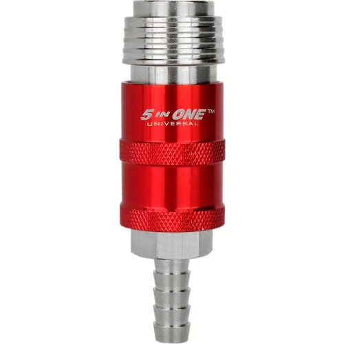- 5 In One Universal Safety Exhaust couplers safely bleed excess air pressure, acting as a quick connect point to easily alter hose connections
