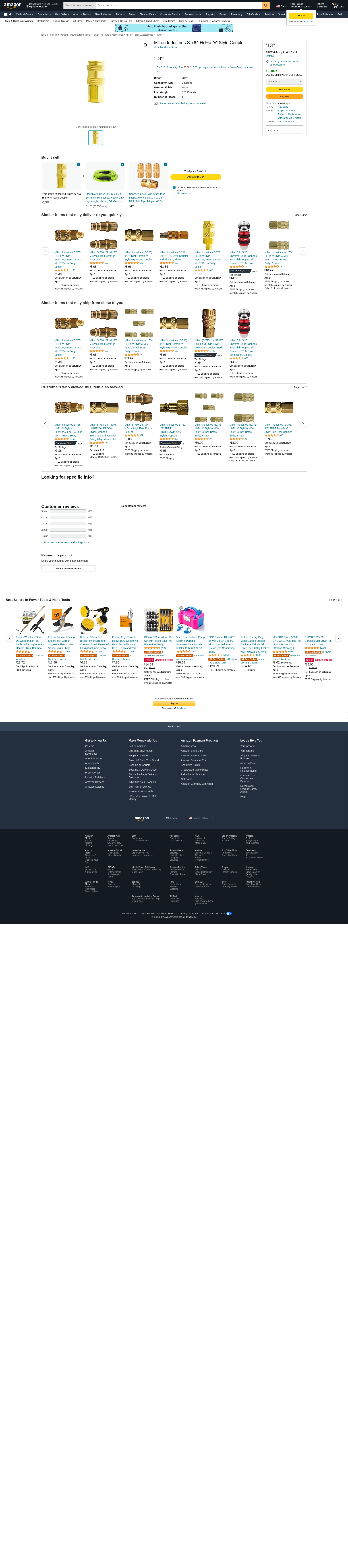 Milton Industries S-764 Hi Flo "v" Style Coupler
