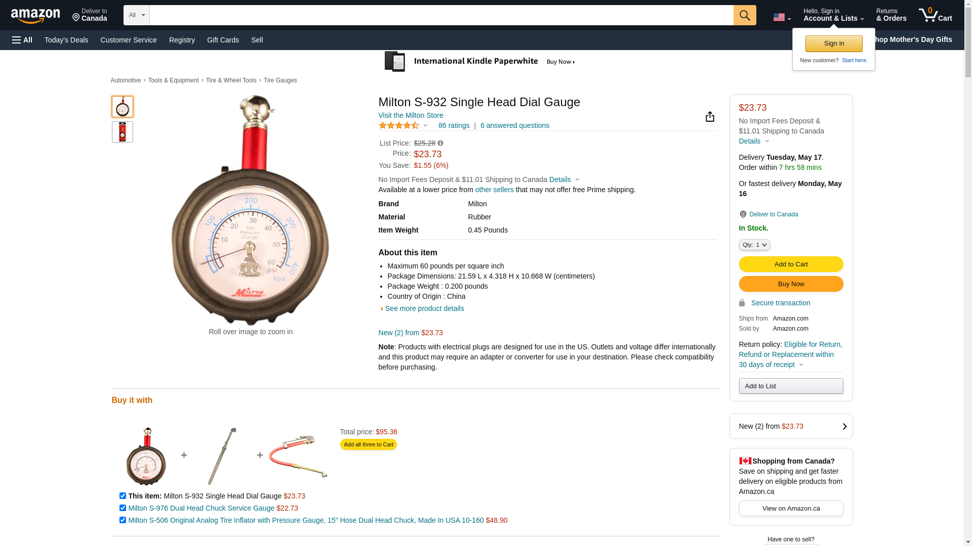 Milton S932 Dial Tire Gauge