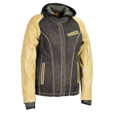 Milwaukee Womens Two Tone Denim & Leather Scuba Jacket w/ Full Hoodie Jacket Liner Black & Beige