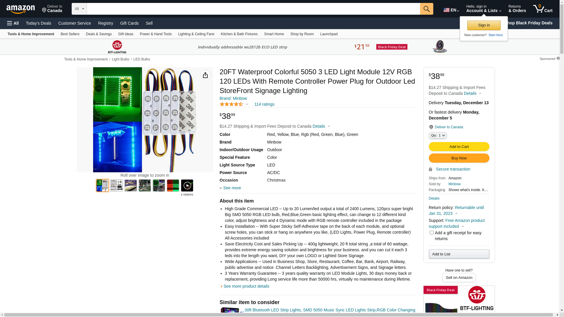 20FT Waterproof Colorful 5050 3 LED Light Module 12V RGB 120 LEDs With Remote Controller Power Plug for Outdoor Led StoreFront Signage Lighting: Maxedbuy.com