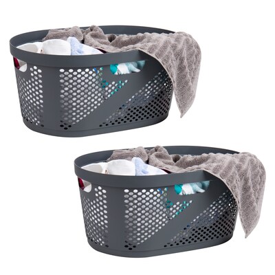 Mind Reader 10.57-Gallon Laundry Basket with Handles, Plastic, Gray, 2/Set (2HHAMP40-GRY) | Quill.com