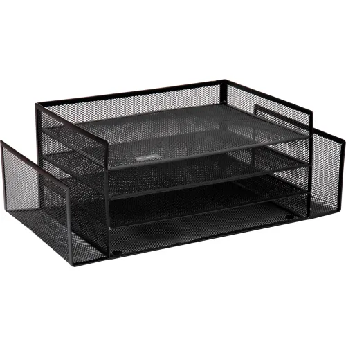Mind Reader Desktop Organizer, File Storage, Paper Tray, Workspace, Office, Metal Mesh, 16.75"L x 9.15"W x 6"H, Black