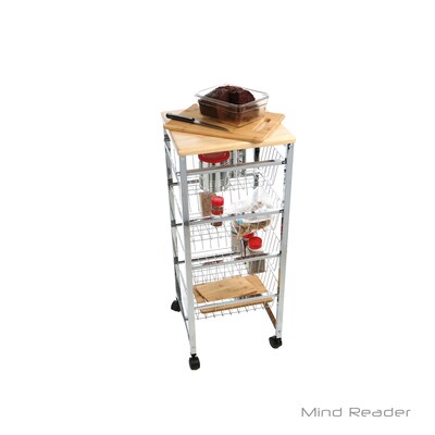 Mind Reader 4 Tier Wire Basket Cart with Wood Surface, Silver (4WIRECART-SIL) | Quill.com