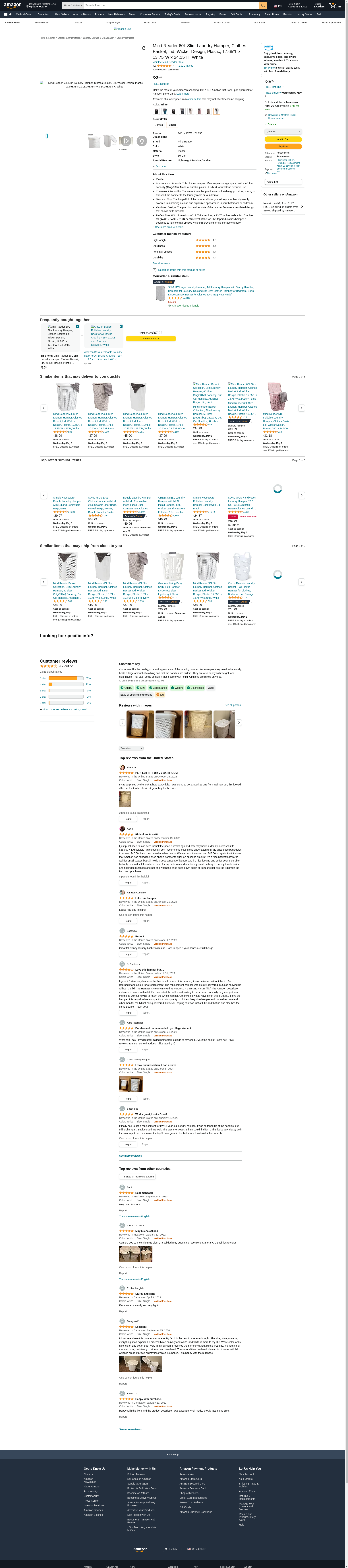 Mind Reader 60HAMP-WHT 60 Liter Basket, Laundry Hamper with Cutout Handles, Washing Bin, Dirty Clothes Storage, Bathroom, Bedroom, Closet, White: Maxedbuy.com