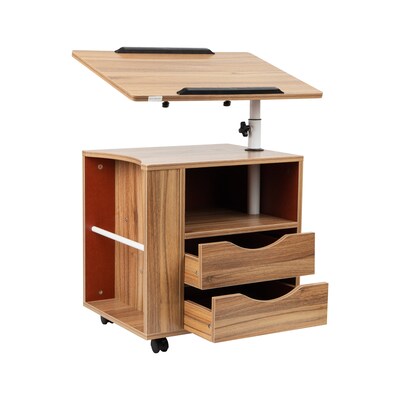 Mind Reader Bedside Workstation Nightstand Swivel Top Couch Laptop Desk with Drawers and Magazine Holder, Wood Finish, Brown 15.75 in x 23.75 in x 34 in