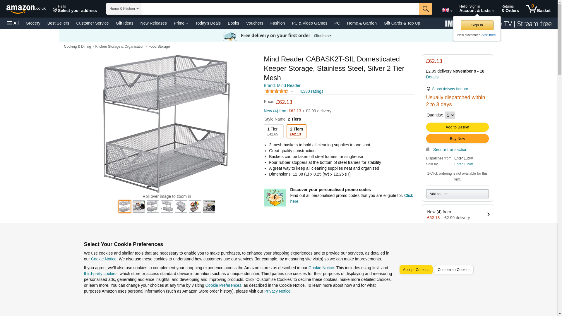 Mind Reader 2-Tier Accessory Organizer Metal Storage Basket, Silver (CABASK2T-SIL) | Quill.com