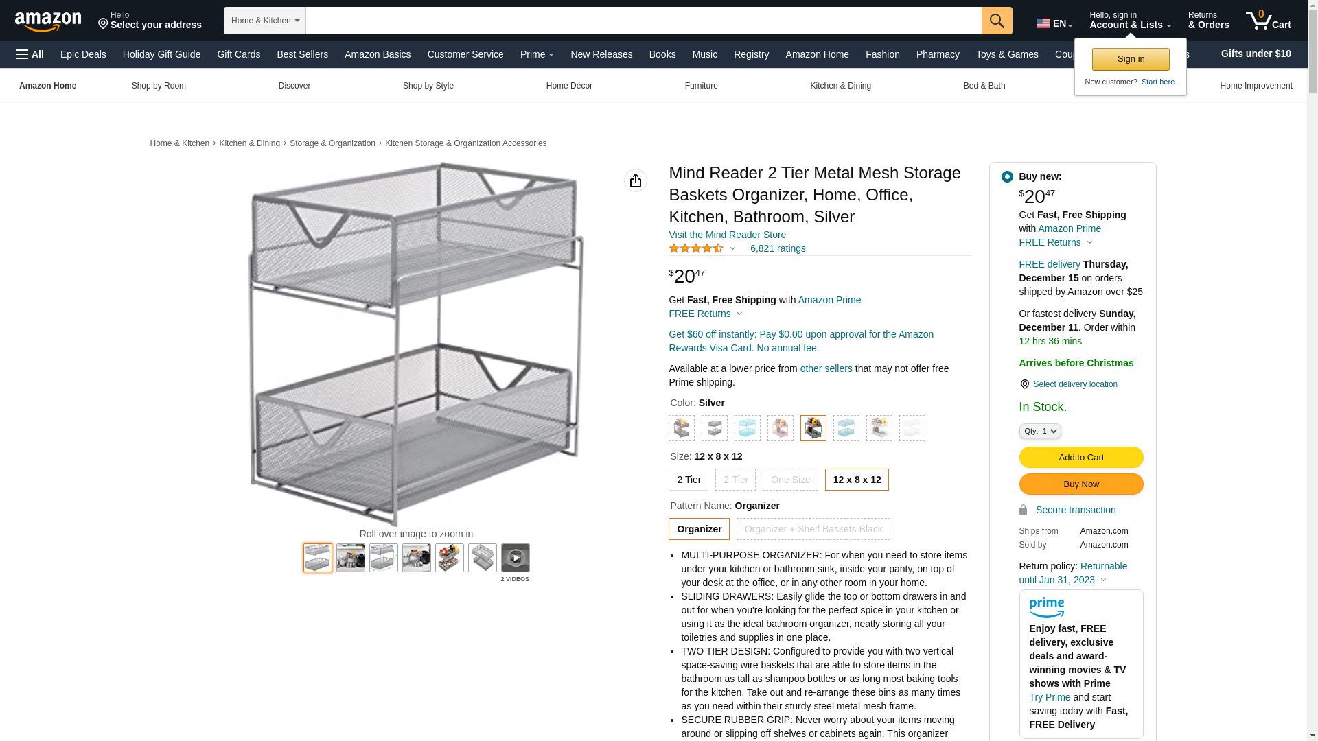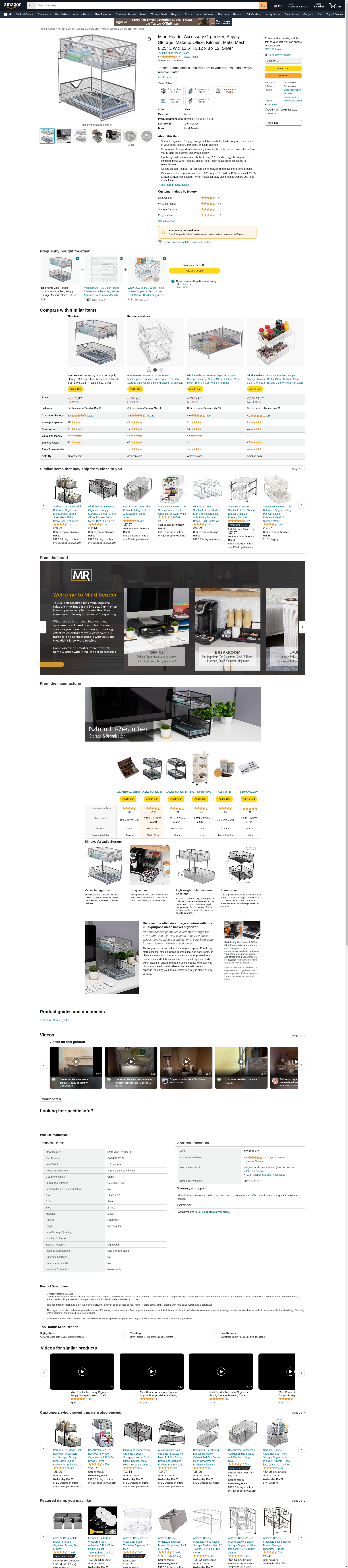 Mind Reader 2 Tier Metal Mesh Storage Baskets Organizer, Home, Office, Kitchen, Bathroom, Silver