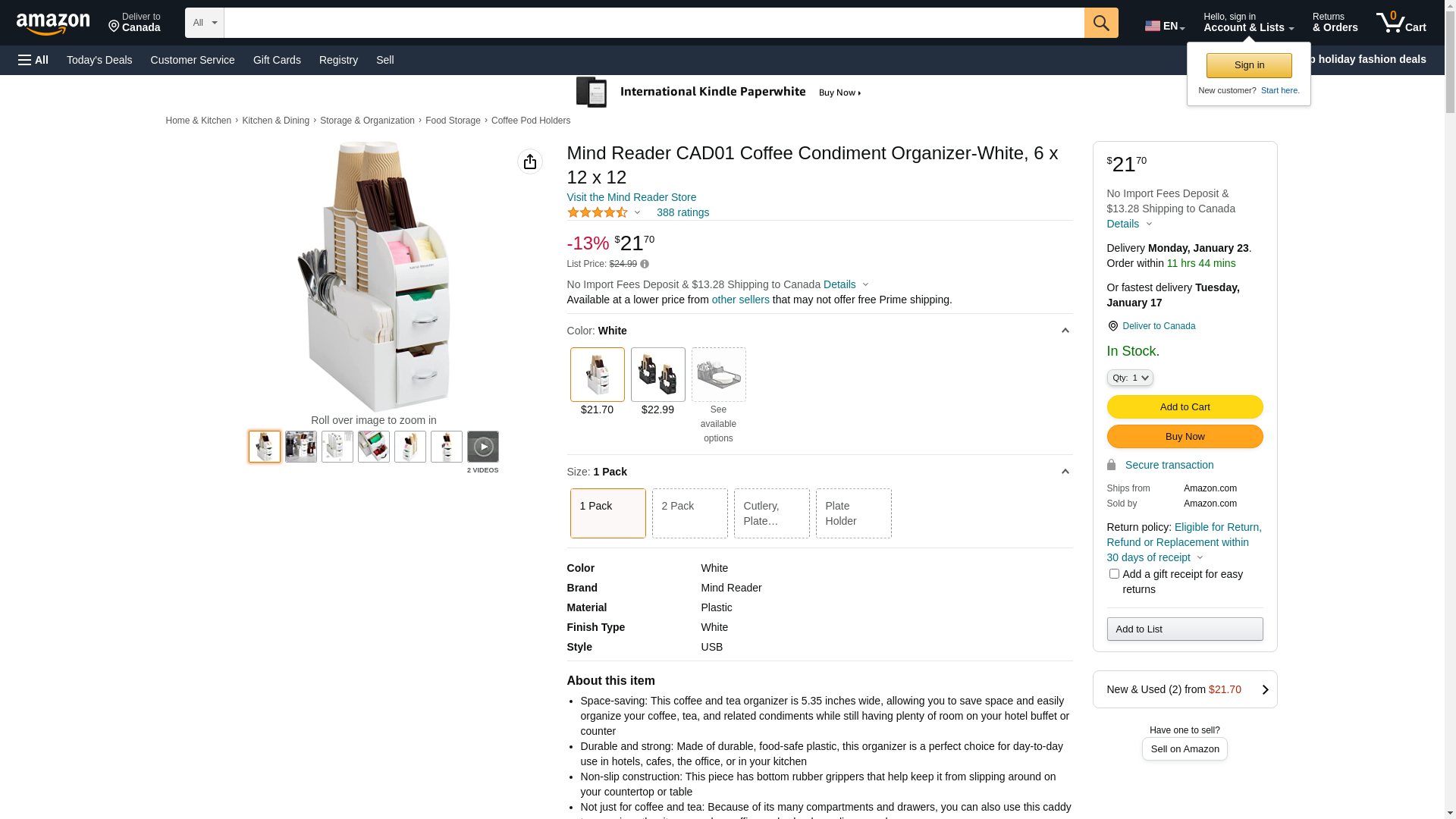 Mind Reader 'Organizer' Coffee Condiment Organizer, White (CAD01-WHT) | Quill.com