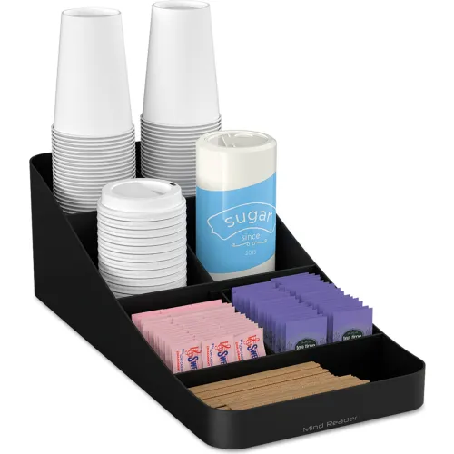 Mind Reader COMP7-BLK 7 Compartment Coffee Condiment, Cups, Lids, Sugars, and Stirrers,Storage Organizer, Black
