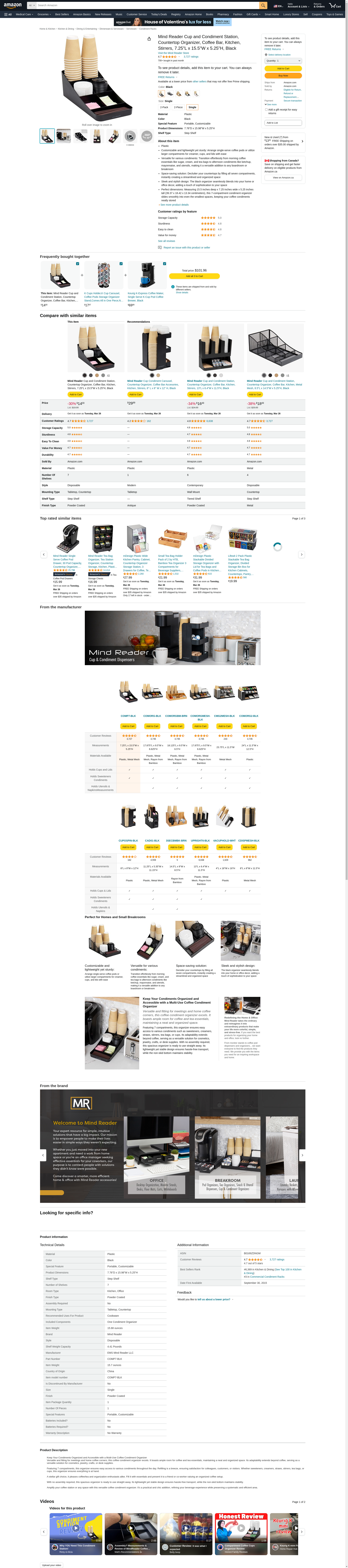 | Feature | 7 compartments Holds all your coffee and Tea condiments |