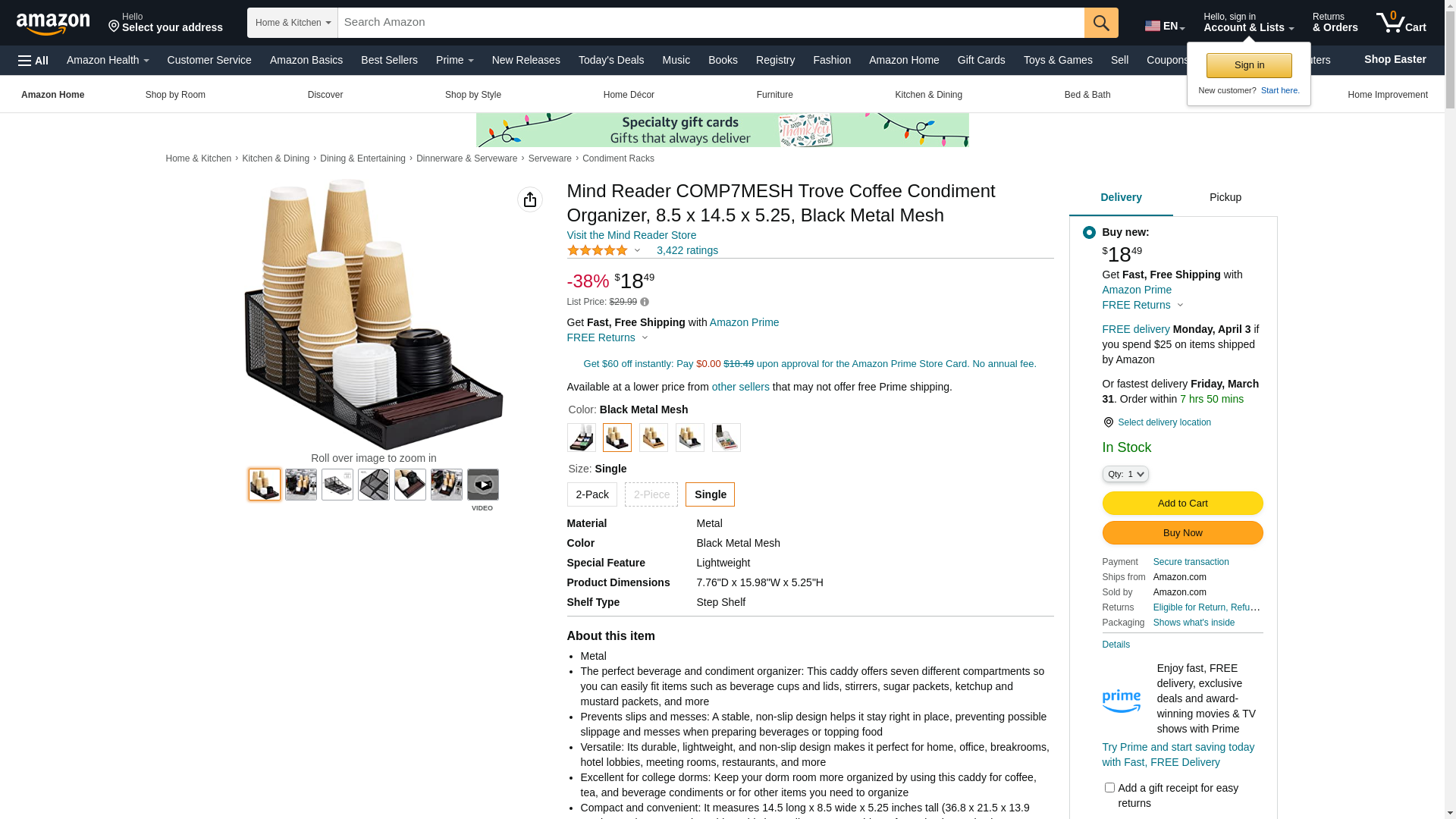 Mind Reader ' Trove' 7 Compartment Tea/Coffee Condiment Organizer, Black Metal Mesh (COMP7MESH-BLK) | Quill.com