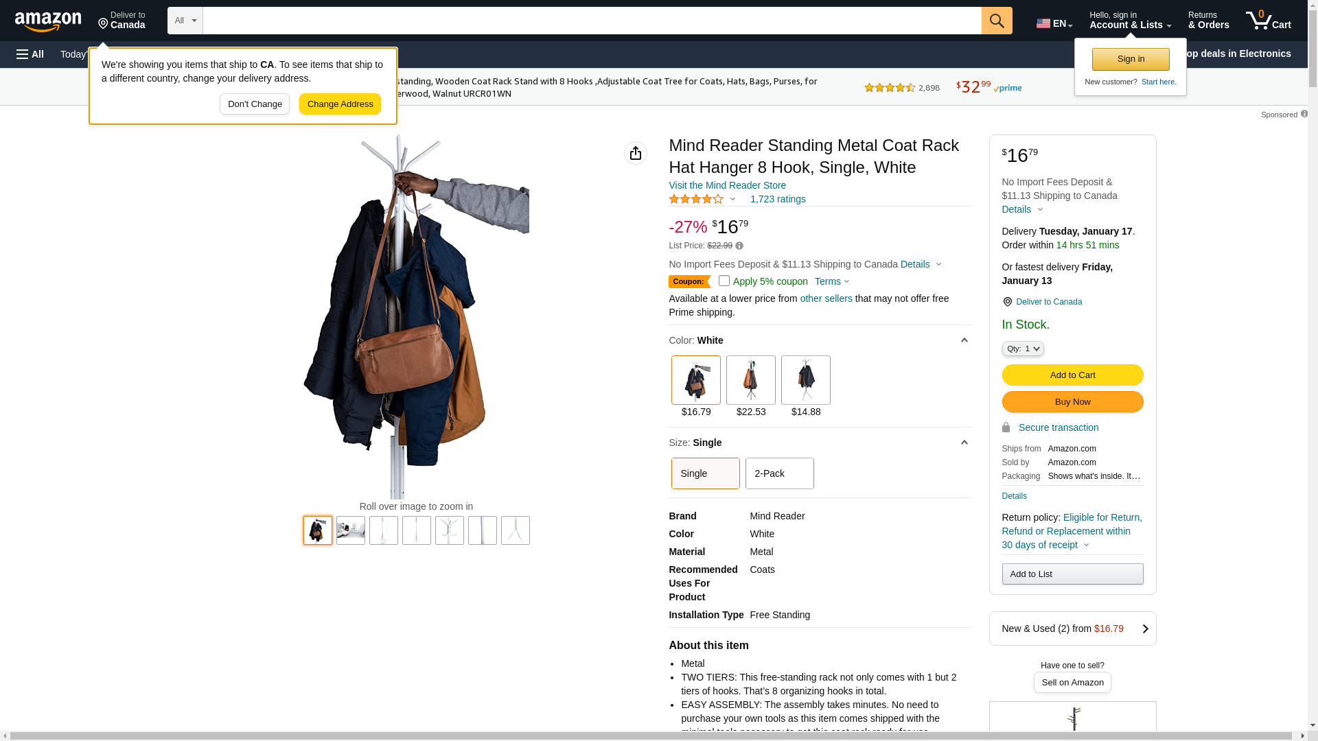 Mind Reader Coat Rack Freestanding Coat Tree, White, Metal (CRACK11-WHT) | Quill.com