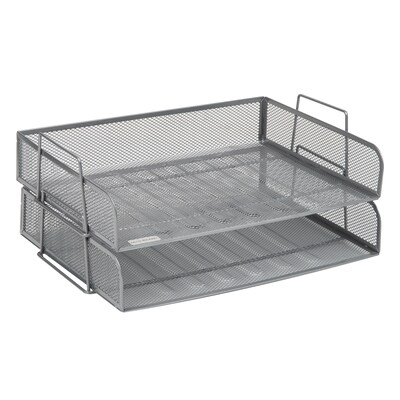 Mind Reader 2-Tier Stackable Paper Desk Tray, Metal, Silver, 2/Pack (DSTACK2-SIL) | Quill.com