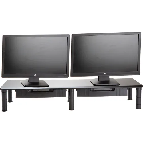 Mind Reader Adjustable Dual Monitor Stand with Drawers, Black (DUBMODR-BLK) | Quill.com