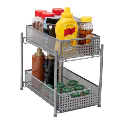 Mind Reader 10.5"H 2 Tier Mesh Cabinet Basket, Silver Metal (HCABASK2T-SIL) | Quill.com
