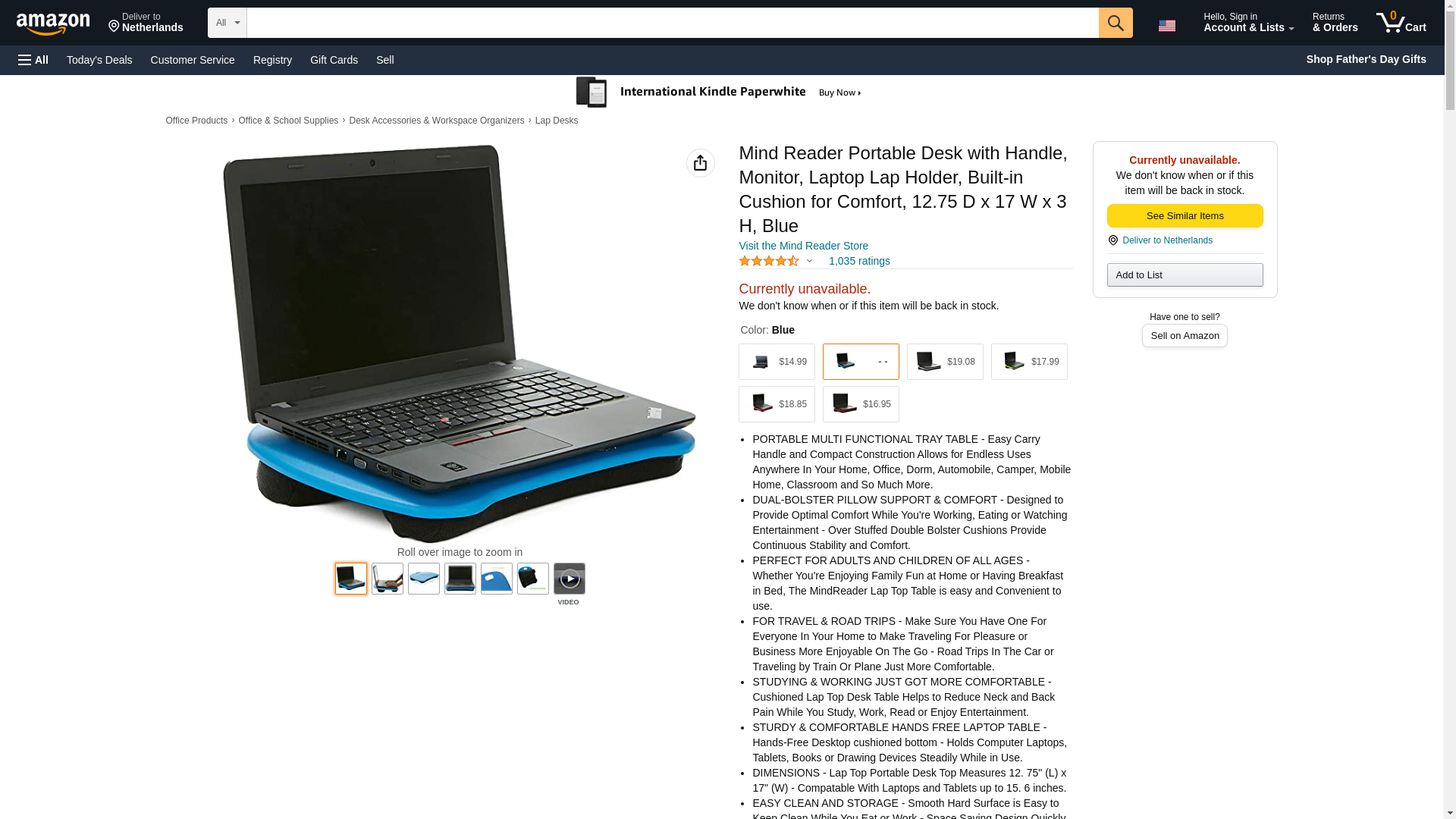 Mind Reader Portable Desk with Handle, Monitor, Laptop Lap Holder, Built-in Cushion for Comfort, 12.75 D x 17 W x 3 H, Blue