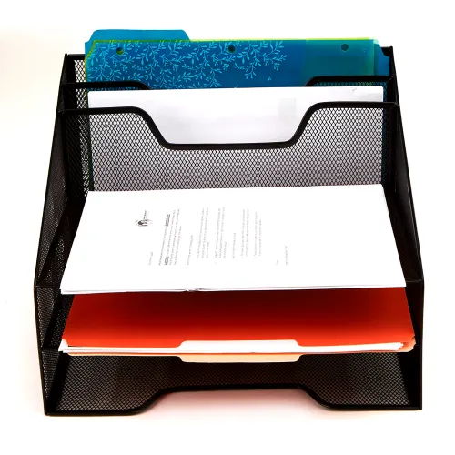 Mind Reader Desktop Organizer, Vertical File Holder, Paper Trays, Office, Metal Mesh, 12.5"L x 11.5"W x 9.5"H, Black