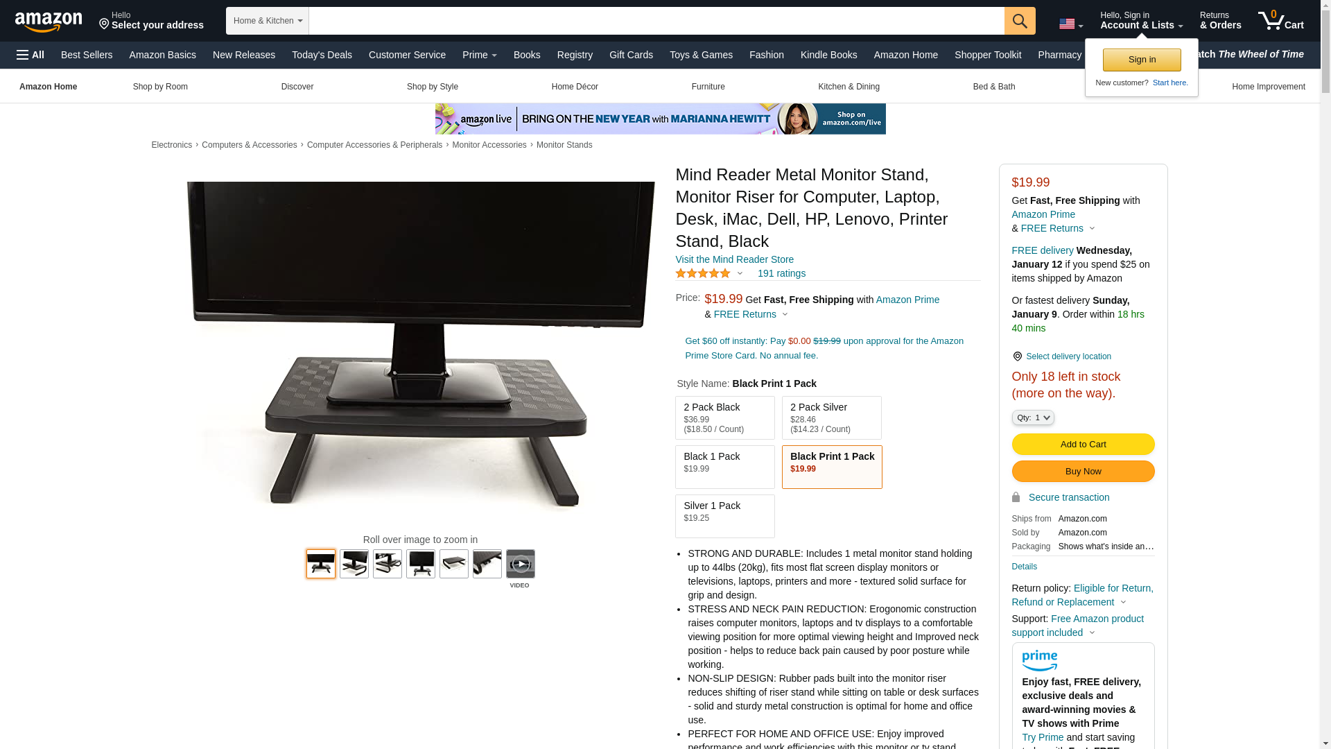 Mind Reader Metal Monitor Stand, Monitor Riser for Computer, Laptop, Desk, iMac, Dell, HP, Lenovo, Printer Stand, Black