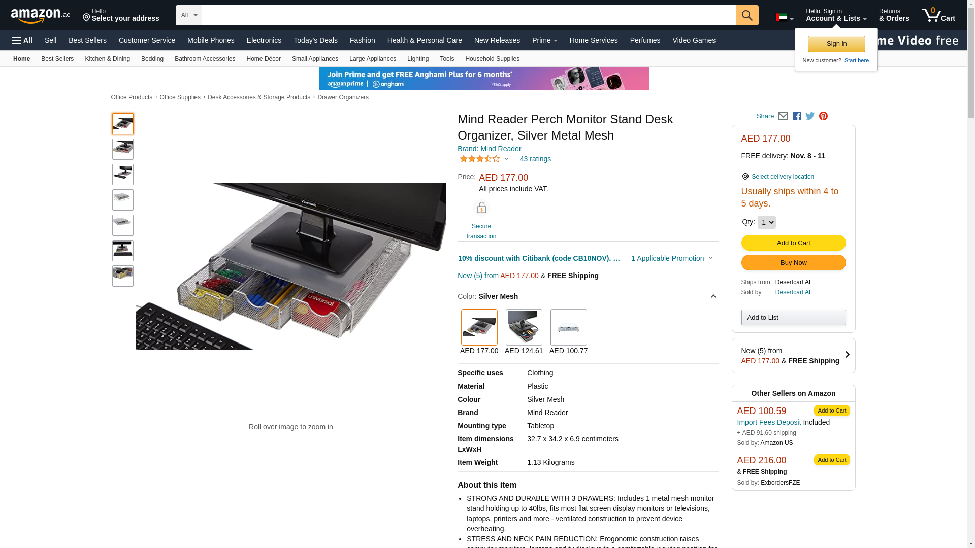 Mind Reader "Perch" PC, Laptop, IMAC Monitor Stand and Desk Organizer, Silver Metal Mesh (MONSTA3DME | Quill.com