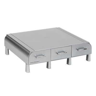 Mind Reader Monitor Stand and Desktop Organizer with 3 Storage Drawers, Silver (MONSTA3D-SIL) | Quill.com