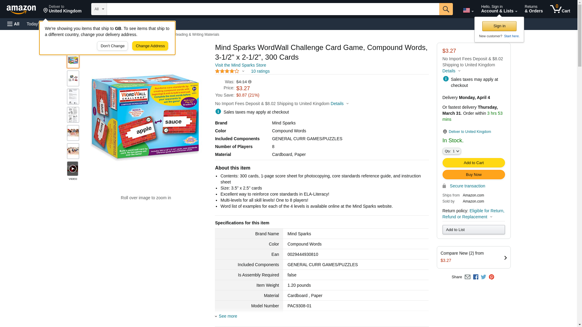 Mind Sparks WordWall Challenge Card Game, Compound Words, 3-1/2" x 2-1/2", 300 Cards