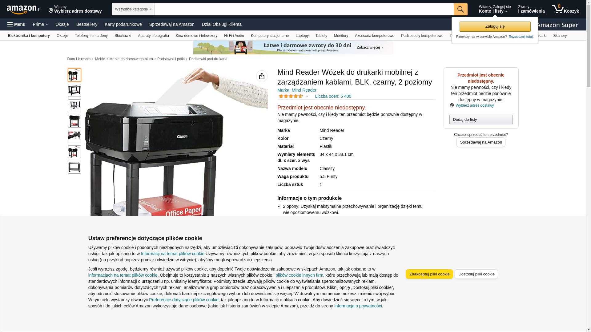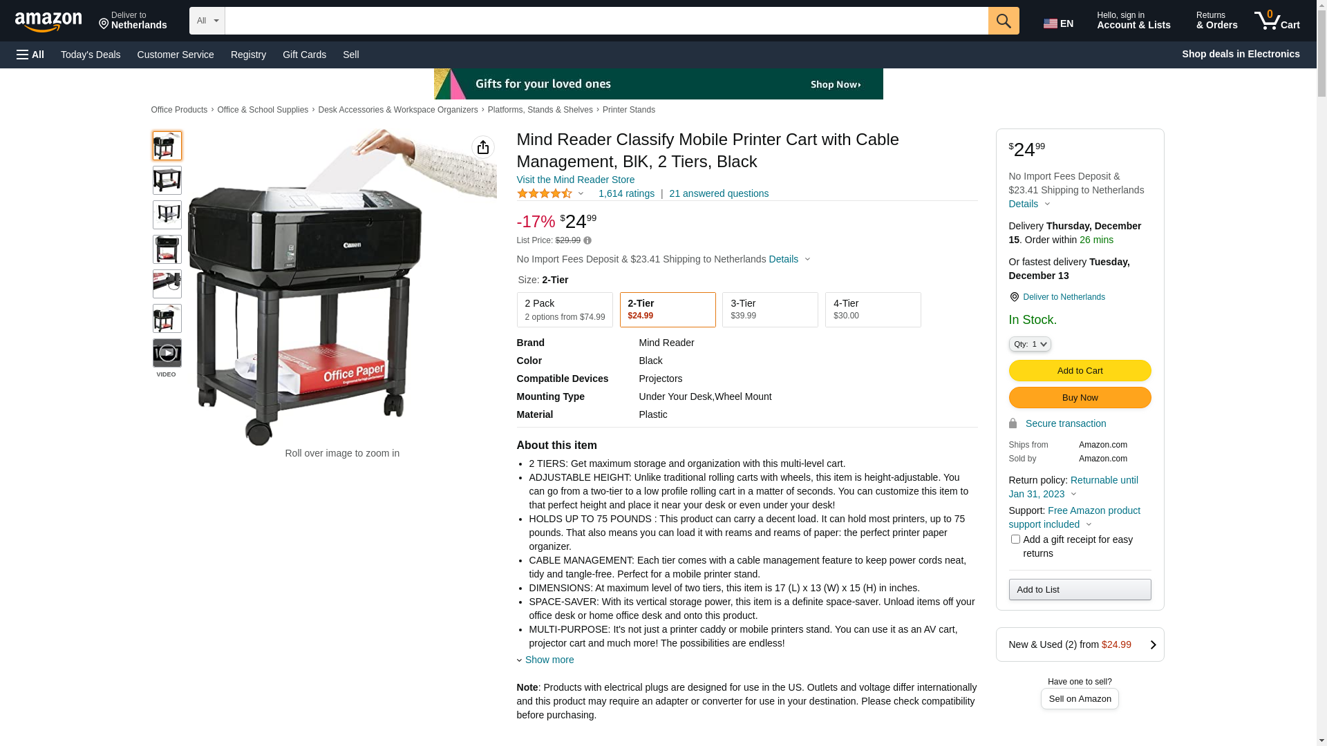 Mind Reader 2-Shelf Mobile Printer Utility Cart with Wheels, Black (PRCARTSM-BLK) | Quill.com