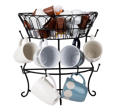 Mind Reader Wire Mesh Countertop Mug Rack with Pegs and Upper Basket, Black (PTREETOP-BLK) | Quill.com