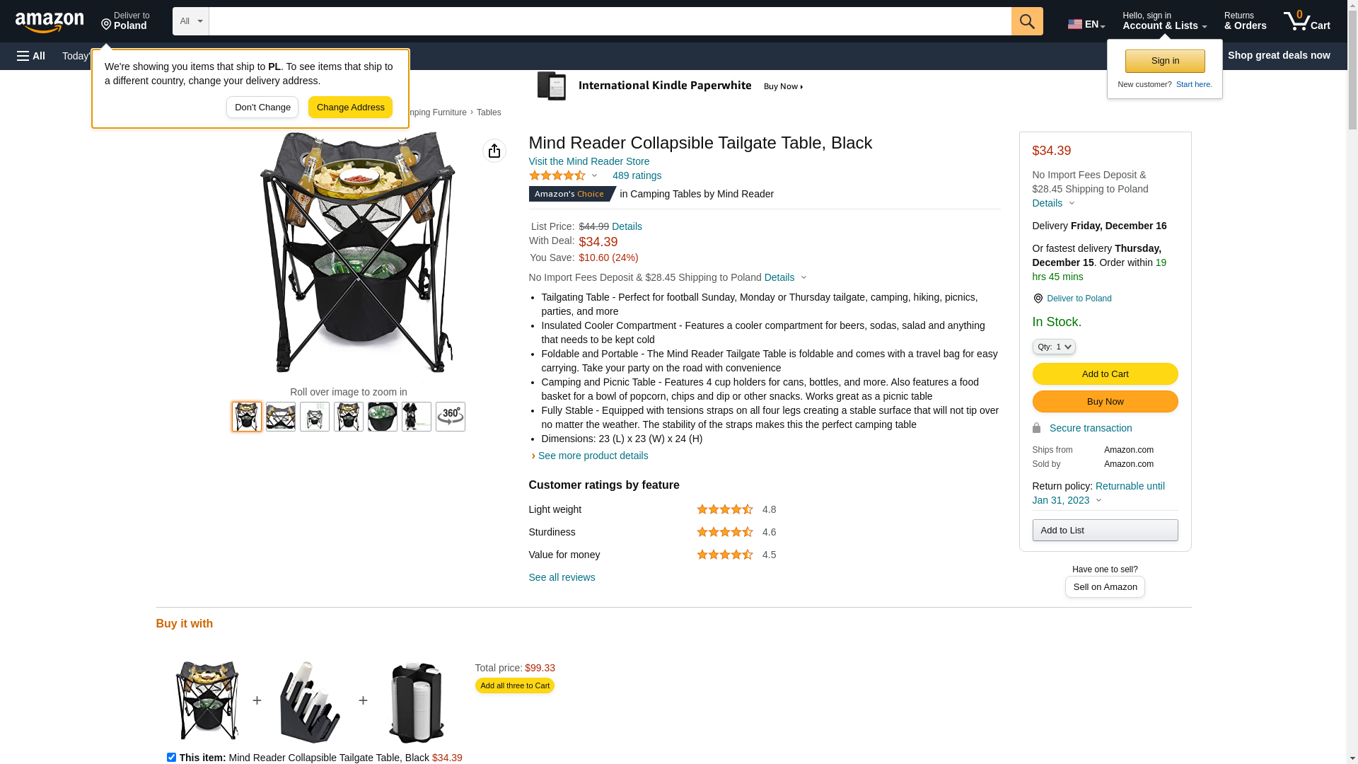 - Dimensions: The tailgate table measures 23.25 long x 23.25 wide x 24.25 inches tall (59.05 x 59.05 x 61.59 centimeters) and weighs 4.02 lbs (1.82 kilograms)
