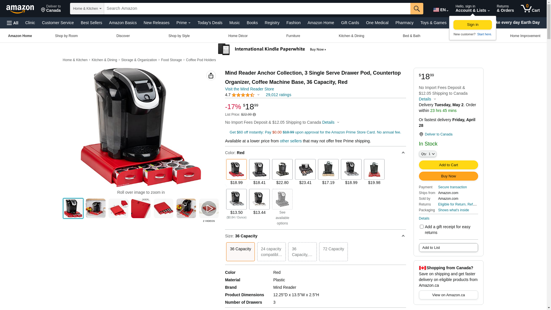 Best Buy: Mind Reader Anchor 36 K-Cup Coffee Pods Drawer Storage Red TRAY6-RED