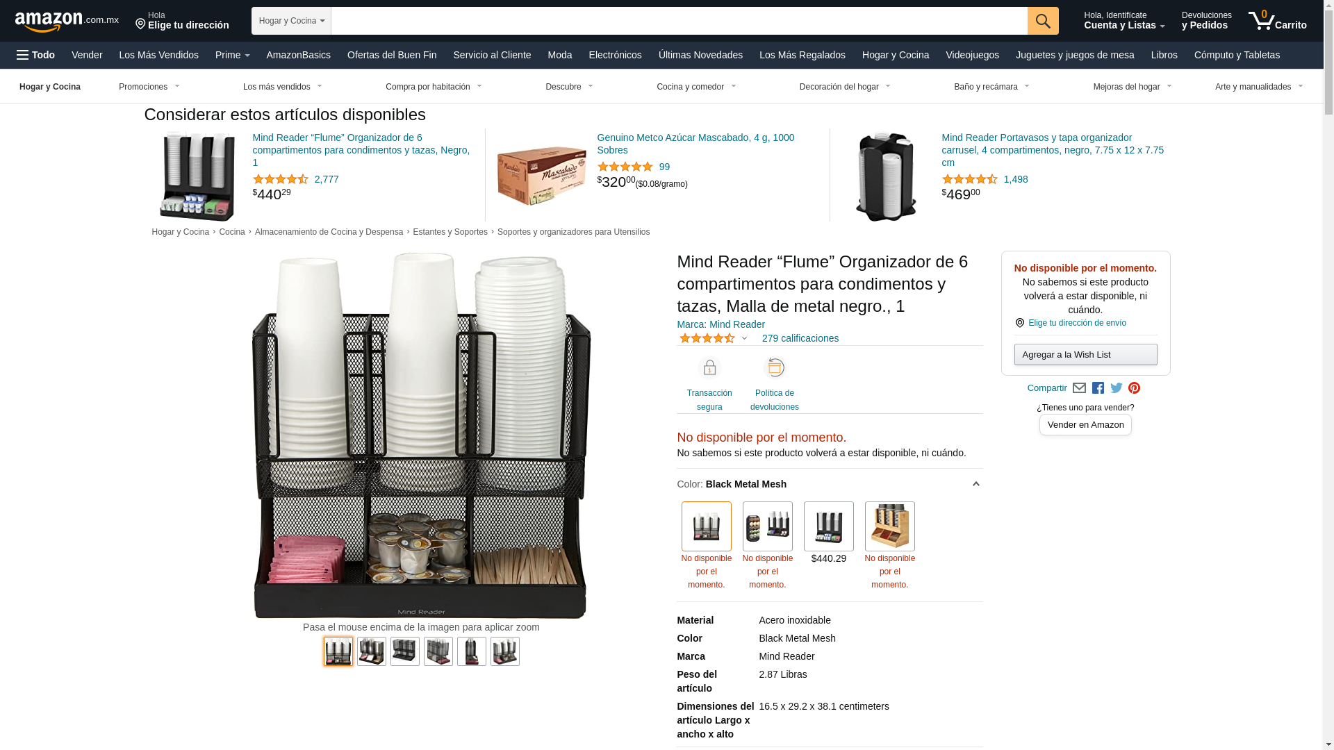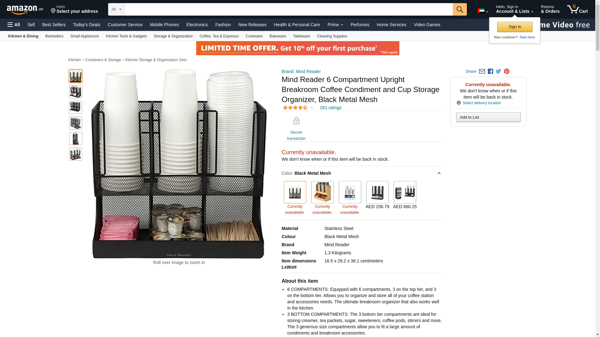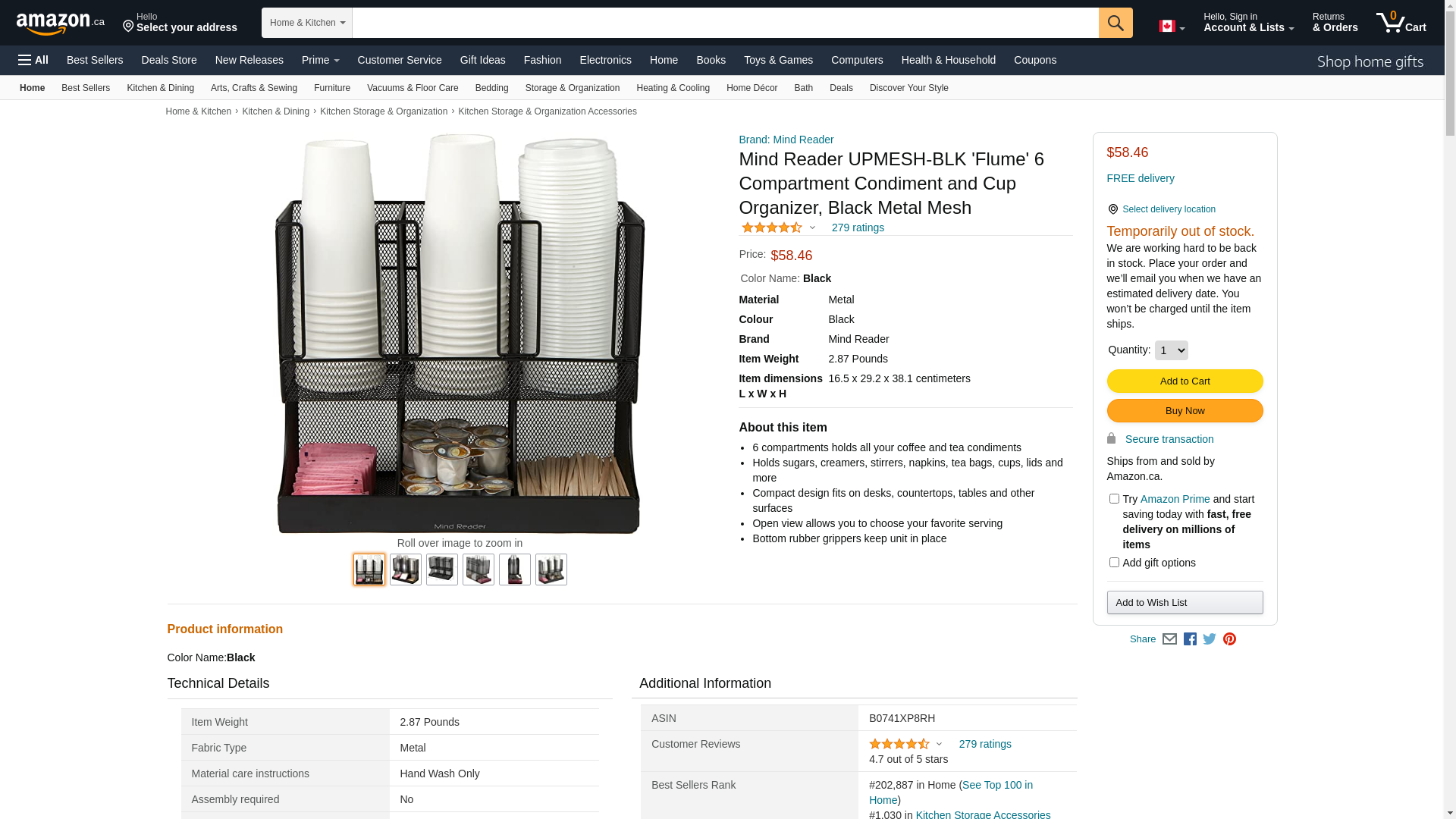 Mind Reader 'Flume' 6 Compartment Coffee Condiment and Cup Organizer, Black Metal Mesh (UPRIGHT6MESH | Quill.com