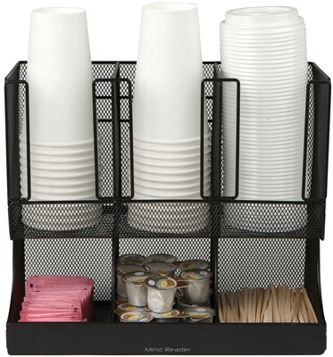 Mind Reader Cup and Condiment Station, Countertop Organizer, Coffee Bar, Kitchen, Metal Mesh, 13"L x 6.45"W x 11.25"H, Black