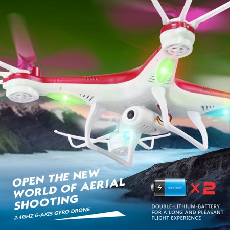 <ul> <li>Two batteries give you a hugely improved flight experience. You can replace between two battery frequently to ensure long flight fun</li> <li>Fine workmanship and attractive appearance.</li> <li>LED light enables you to fly in the dark at night.</li> <li>0.3MP camera free to take photos and videos.</li> <li>2.4GHz technology adopted for anti-interference.</li> <li>Detachable propeller protectors ensure your safe flight.</li> <li>High/low speed switch, suitable for indoor and outdoor.</li> <li>3D-flip function and headless mode make your flight exciting and fun.</li> <li>With one-key return function, the drone can find its way back home easily.</li> <li>Newest 6-Axis Gyro control system ensures stable flight and easy operation.</li> </ul>