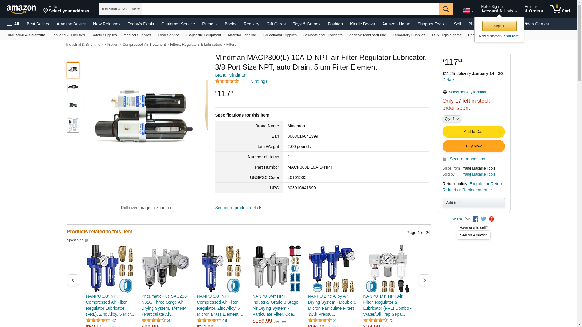 | Coast Pneumatics | MACP302-10A-CD-NPT | 1 | -2 | 1 | 1 @ $112.02 |
