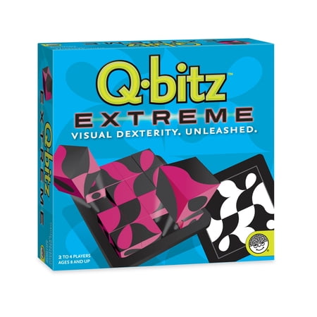 Players each get their own Q-bitz Extreme board with 16 cubes, and race to be first to replicate the curving pattern to win the card. The player with the most cards at the end of the game is declared the Extreme champion! Game variations include rolling the cubes until you get the correct shapes needed to complete the pattern, studying the card for ten seconds before turning it over and recreating the pattern from memory, and a special round of game play where you create the pattern in reverse! Includes 80 pattern cards. Ages 8 and up.