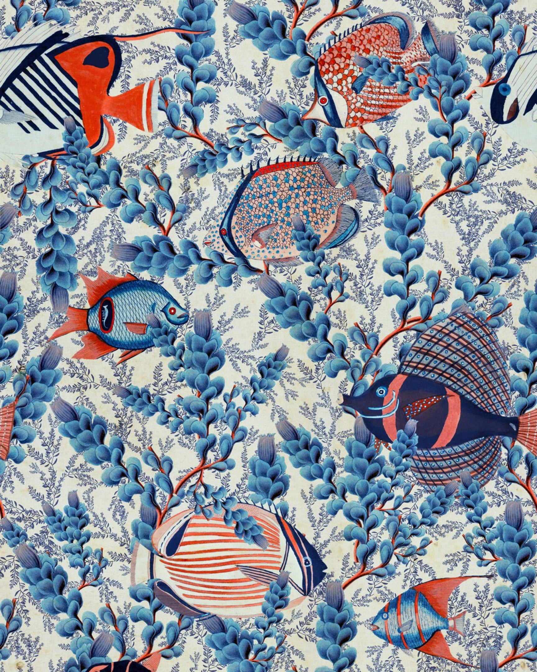 Shop Sample Aquarium Wallpaper in Blue and Taupe from the Sundance Villa Collection by Mind the Gap | Burke Decor