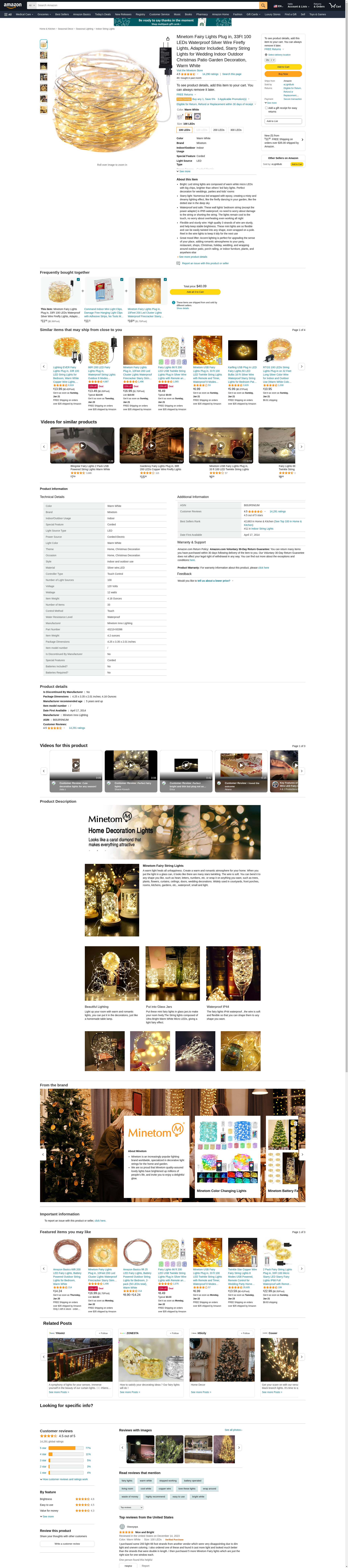 Minetom Fairy Lights Plug in, 33Ft 100 LED Waterproof Firefly Lights on Silver Wire - UL Adaptor Included, Starry String Lights for Wedding Indoor Outdoor Christmas Patio Garden Decoration, Warm White