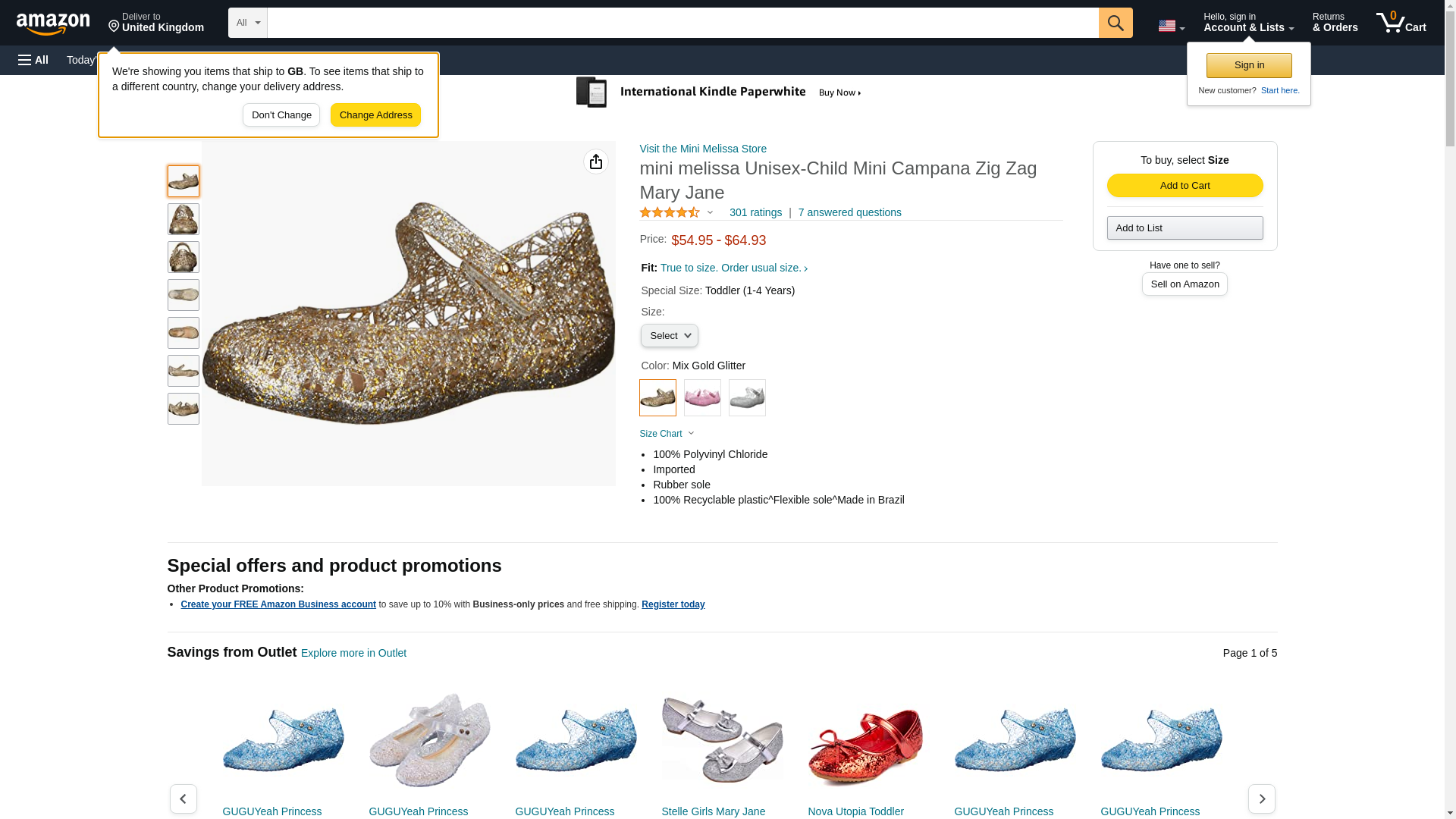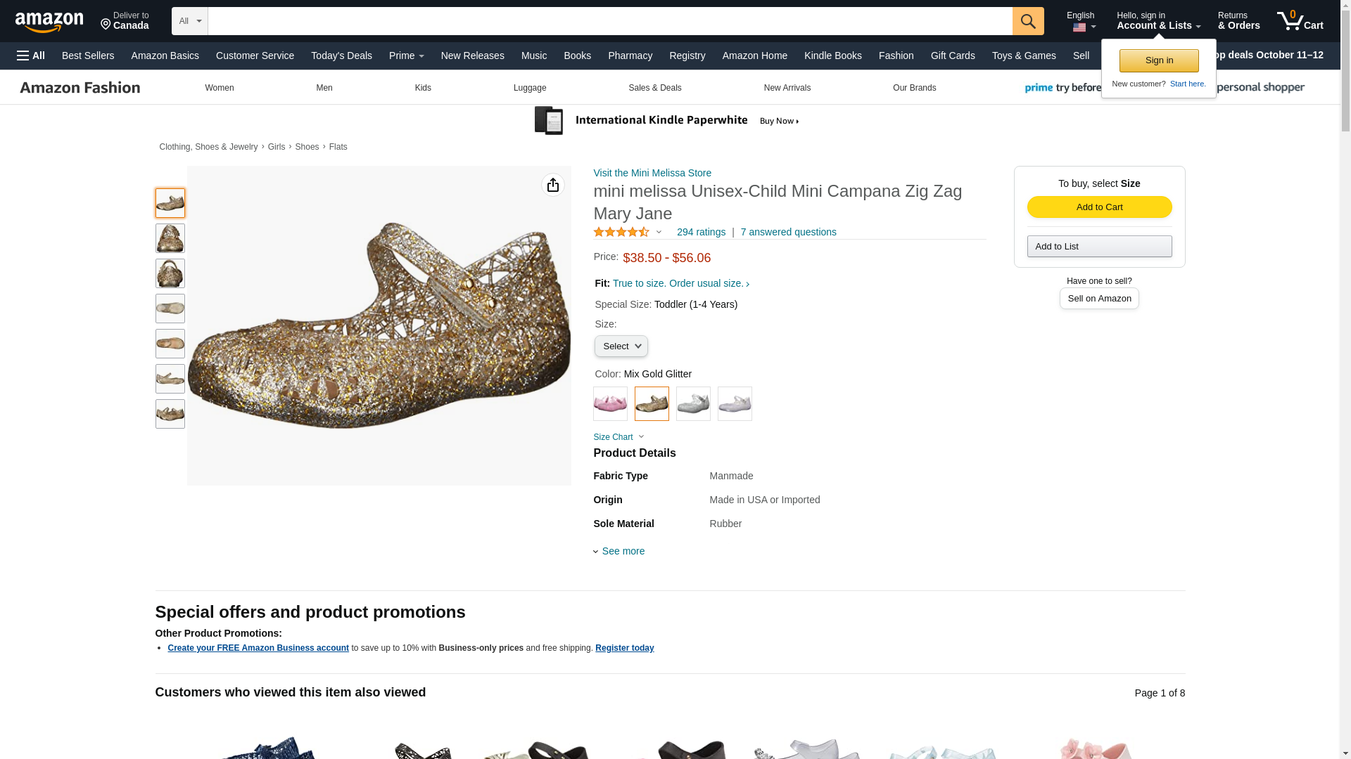 Mini Melissa\xa0CA Ballet Mary Jane (Toddler), Gold Glitter, 6 M US Toddler