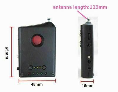 <p> Many people have the feeling theyre being watched or eavesdropped on. But this is an issue of particular importance for law enforcement personnel and spies. Sometimes while youre keeping tabs on others you also need to know whether somebody\'s keeping tabs on you. And its not like you can just ask and expect an honest answer. At those times, this device is your best friend.<br> <br> This wireless camera detector will expose both wired and wireless cameras, dead or alive. The ultra advanced hand held unit will also let you know about RF bugs and wiretaps in one of three ways: with an alarm, silent LED or silent vibration. Locates bugs on frequencies from 1 MHz to 6500 MHz. Alerts to VHF, UHF, WIFI, Bluetooth and GSM devices. This particular unit even features a built in Li-Ion battery, eliminating the need for batteries.<br> <br> <b>Features</b><br> </p> <ul> <li>Detects Hidden Video Cameras Dead Or Alive!</li> <li>Wide Range Sweep For Bugs From 1MHz - 6500MHz.</li> <li>Detects Wired & Wireless Hidden Video Cameras!</li> <li>Silent Alert Vibration Mode</li> <li>Alarm alert mode</li> <li>Silent LED Alert Mode</li> <li>Instant auto-detecting function</li> <li>Wide Band RF bug detector with working frequency between 1MHz - 6500MHz</li> <li>Also sweeps and detects VHF, UHF, WiFi, Bluetooth and GSM bugs.</li> <li>Very small light weight and portable size.</li> <li>Detecting sensitivity adjustable</li> <li>Multi-alarming mode: vibrating, beeping & LED light indicator</li> <li>Built in Li-Ion Battery</li> </ul> <p><b>Specifications</b></p> <ul> <li>Detecting frequency range: 1MHz - 6500MHz.</li> <li>Laser detecting range of wired cameras (self-shoot): 0.1 - 20 m</li> <li>Detecting range of RF device: 0.05 - 10 m (subjected to the transmitting power of the RF device)</li> <li>Power supply: 1.5V AAA battery x2 Up to 6 hours of continuous use.</li> <li>Viewing Lens: IR filtered lens</li> <li>Current consumption: 8mA</li> <li>Self-shoot detecting wave length: 920nm</li