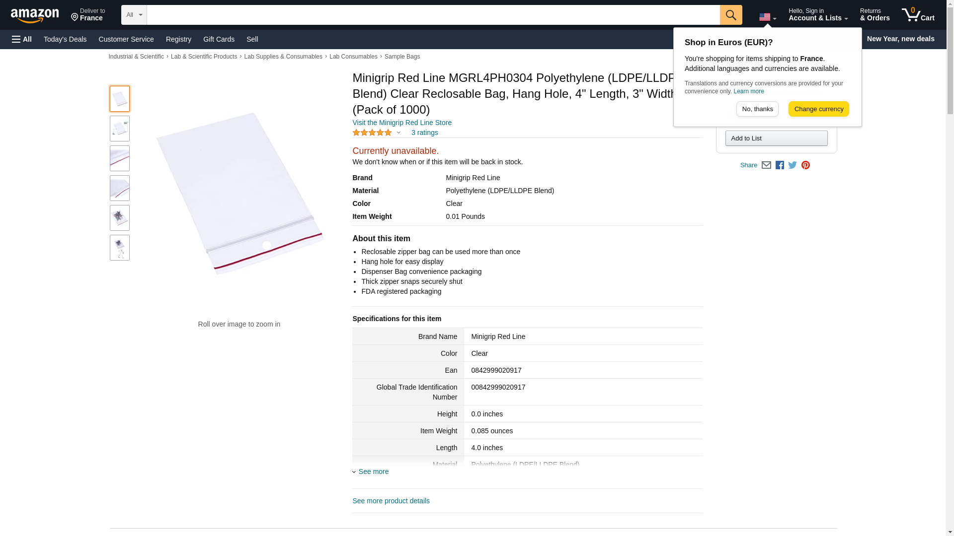 3" W x 4" L x 4 mil Minigrip? Red Line? Reclosable Bags with Hang Holes - Case of 1000