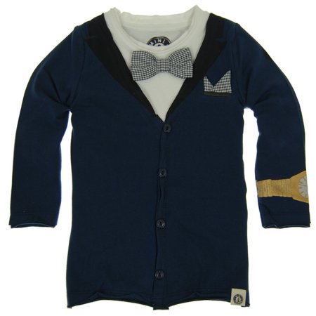 <ul> <li>Screen print tuxedo makes this Mini Shatsu long sleeved tee so fun</li> <li>Sewn on real bow tie, double layer placket detail</li> <li>Chest pocket, brand logo print at sleeve</li> <li>95% Cotton 5% Spandex. Machine wash</li> <li>Sizing is based on U.S. clothing size standards</li> </ul>