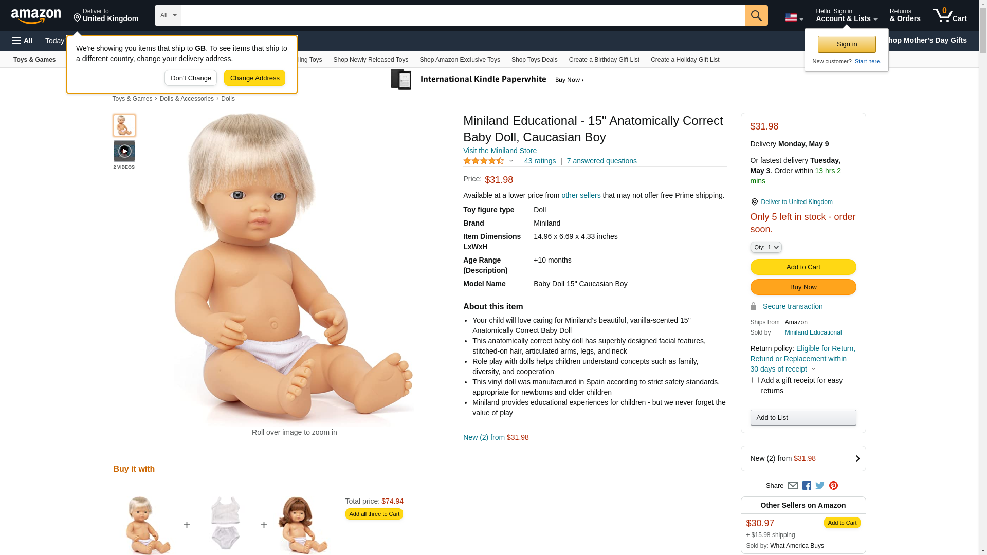 | Feature | "Your child will love caring for Miniland's beautiful, vanilla-scented 15'' Anatomically Correct Baby Doll" |