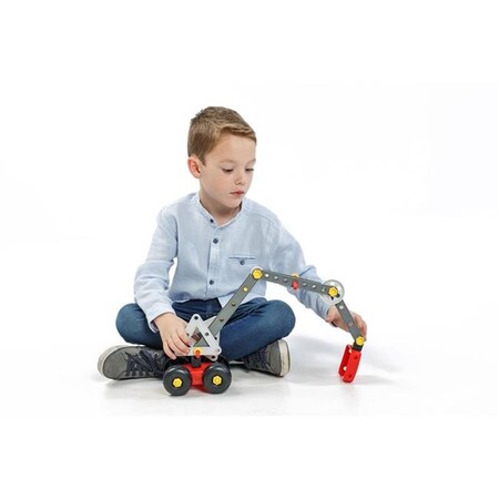 Every young engineer can build objects from the real world. The set is made of durable plastic and includes a spanner, screws, pulleys, nuts, etc. Various designs and 8 large size cards included. Detailed examples of construction with progressive stages, helping the child's attention and reasoning. To begin making more complex assemblies developing creativity. Improved component design and better quality materials! Extremely easy to thread! With progressive difficulty model cards to create different models. Each set includes 191 pieces and 8 cardboard activity cards.
