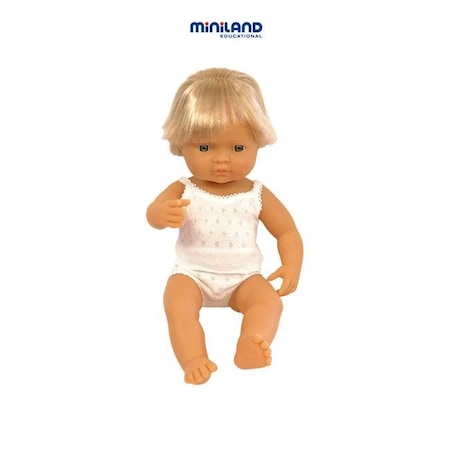 Miniland Doll 15'' Caucasian Blond Boy (Box) - Made in Spain, Anatomically Correct, Quality, Inclusion