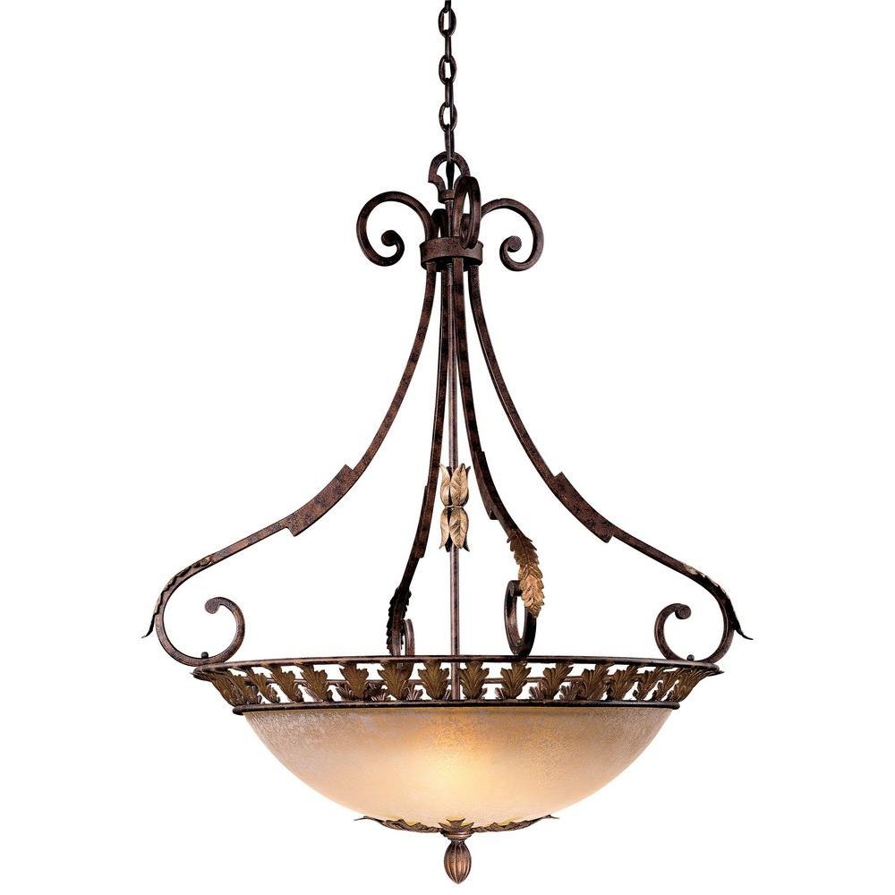 This Five Light Up Pendant has a Bronze Finish and is part of the Zaragoza Collection.