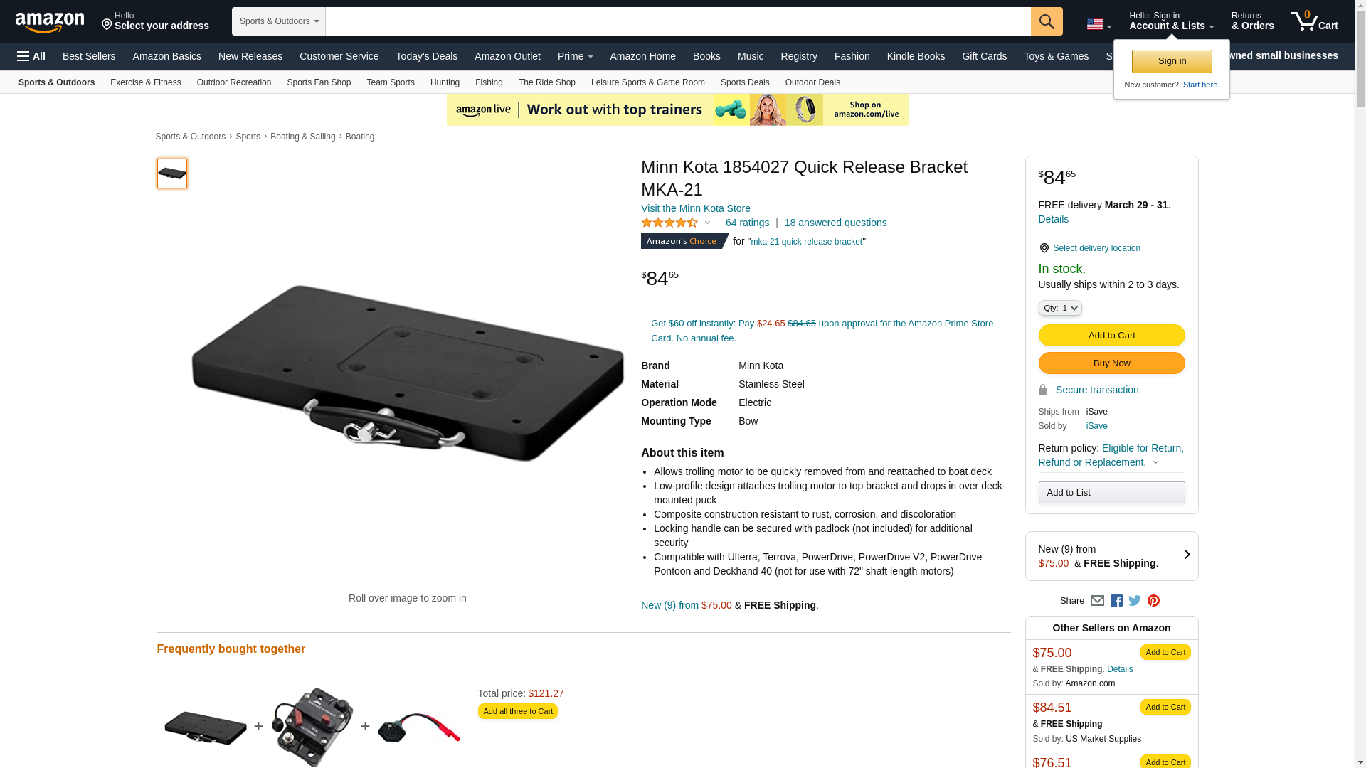 Minn Kota 1854027 Quick Release Bracket MKA-21